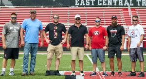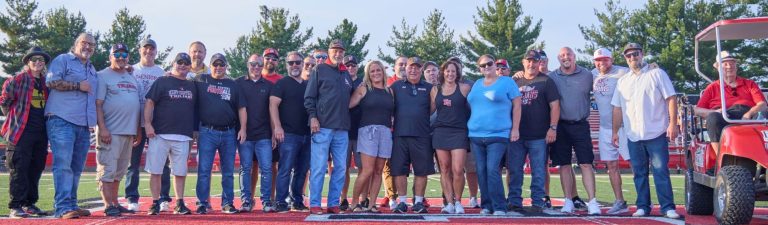 East Central High School honored alumni from its 1994 Class 4A football state championship team Friday, Aug. 23, during the Trojans’ 24-3 season-opening win over Lawrenceburg. The undefeated (14-0) Trojans, coached by Indiana Hall of Famer Rod Ballart (center), captured the program’s first state title with a 35-0 victory over DeKalb at what was then known as the Hoosier Dome in downtown Indianapolis.(Sandy Mahoney)