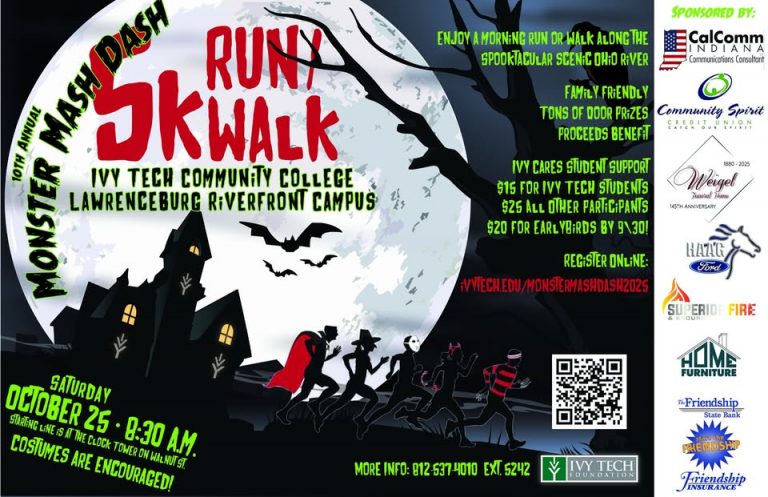 Home Community Monsters running Monsters runningOctober 19, 2025Community LAWRENCEBURG – Ivy Tech Community College Lawrenceburg will host its 10th annual Monster Mash Dash 5K Run/Walk at 8:30 a.m. Saturday, Oct. 25, along the… Login to continue reading Login Sign up for complimentary access Sign Up Now Close Previous Post Merged church wants to be a ‘sending church’ Featured Local Savings -
