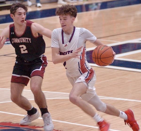Senior Hudson Shackelford led South Dearborn with 20 points in Tuesday’s 67-42 Senior Night victory over Community Christian. Jim Buchberger/The Register